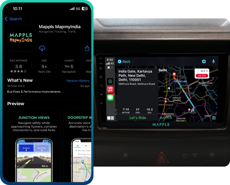 With the Mappls App, users receive a clear 3D representation of junction ahead, complete with clearly marked lanes. Junction View also shows the entry or exit of the flyover in 3D photo-realistic format while navigating. Get Mappls App, and experience the safest, most convenient way of navigating!