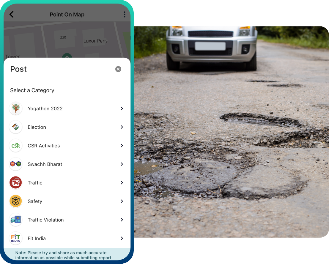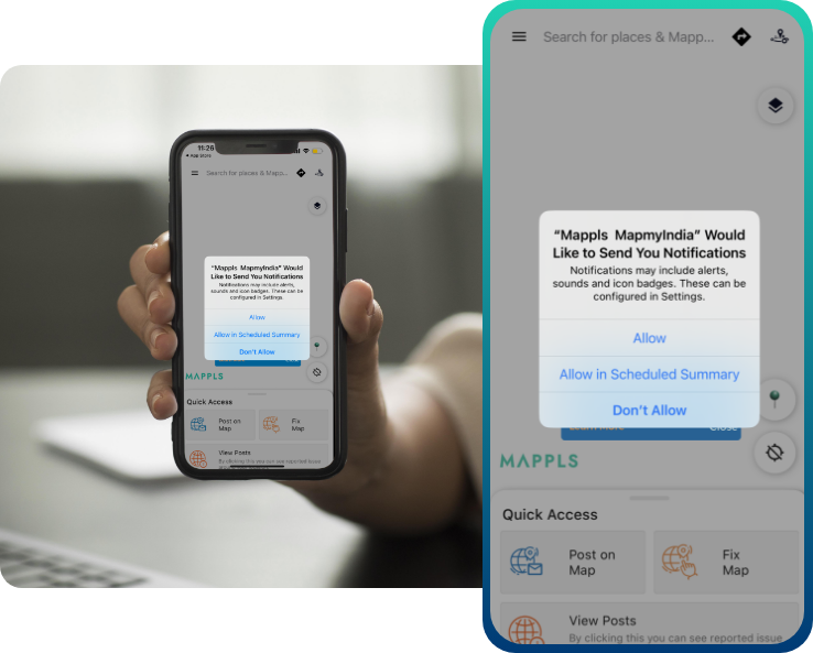 With Mappls App, you can search for exact house addresses, buildings & get step-by-step voice-guided directions to your destination with live traffic-updates and ETA along the route. You can also see and post hyper-local issues & updates like traffic, potholes, unsafe zones to make our roads, neighbourhood & cities better