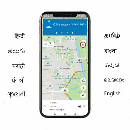 As a Swadeshi app, we are committed to catering to the needs of the average Indian, no matter where they live or where they come from. Language is replete with proverbs like “जैसा देश वैसा भेष”, “When in Rome, do as the Romans do”, and more, clearly showing how important tradition, adaptability, and comfort are when considering our immediate environment. We want Mappls App to afford our users the same comfort as their local newspaper, with no gaps in information or comprehension. Instead of having you adapt to our technology, we want our technology to adapt to your life. From far east to far west, you can now find familiarity even in the most unfamiliar terrain. Users can have a fully native language experience with maps, search, turn-by-turn navigation and voice guidance in 9 Indian languages—Hindi, Tamil, Telugu, Bengali, Marathi, Kannada, Punjabi, Malayalam, and Gujarati—across the entire country. Whether you’re a Gujarati speaker in Tamil Nadu or a Malayalam speaker in West Bengal, you have the means to experience a unity with your environment in a way that wasn’t possible earlier. Our approach offers a more human-forward, and equally important, an India-forward approach to technological innovation.