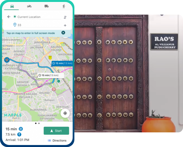 We’ve made sure that nothing is hard to find anymore. Combining our advanced mapping technology with the sheer power and comfort of sight, the Mappls Camera feature, inbuilt into the Mappls App, allows you to record the precise location of even the most obscure locations through its auto-geotagging feature. Simply snap a picture of the location using the Mappls App and find your way to it anytime by scanning the instantly generated QR code!