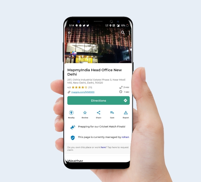 Search the Place or Mappls Pin that you want to Claim.