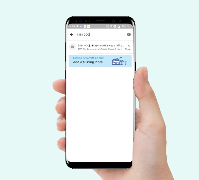 Enter the known mappls pin on the search bar and select the Only result.