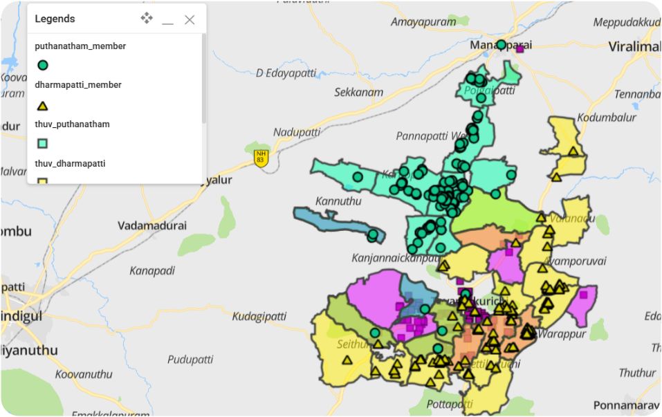 Borrower groups were often geographically scattered, weakening peer accountability and violating Finance lending principles. Workmate flagged such groups using location intelligence, helping restructure them for better peer accountability.